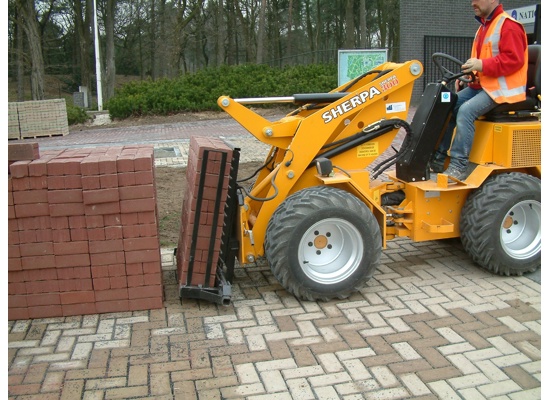 Dit hulpmiddel bestaat uit een hydraulische klem waarmee betonklinkers laag voor laag (verticaal) van een klinkerpakket kunnen worden opgepakt en getransporteerd naar de plaats van verwerking.