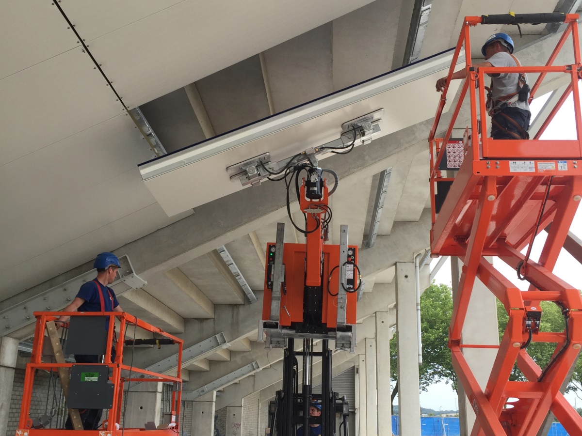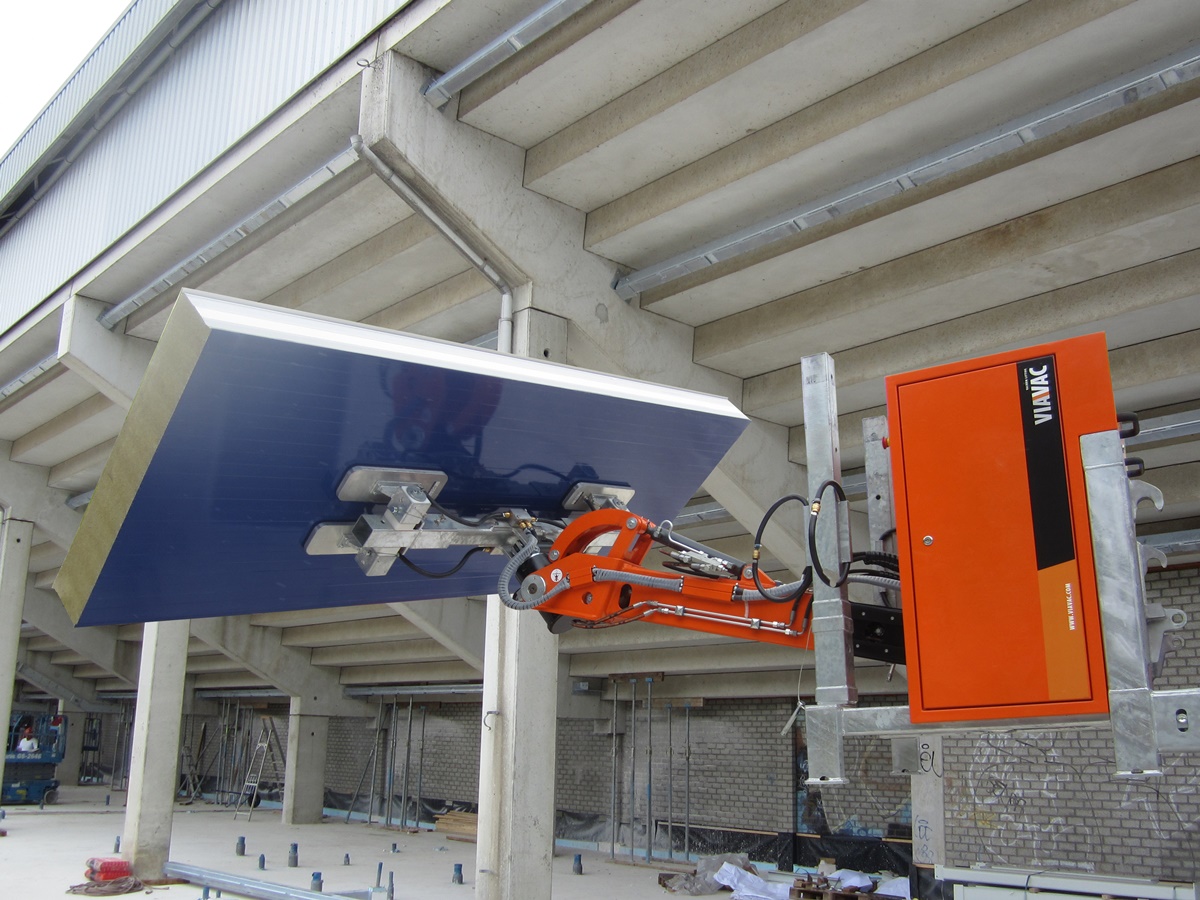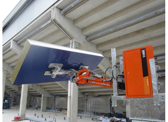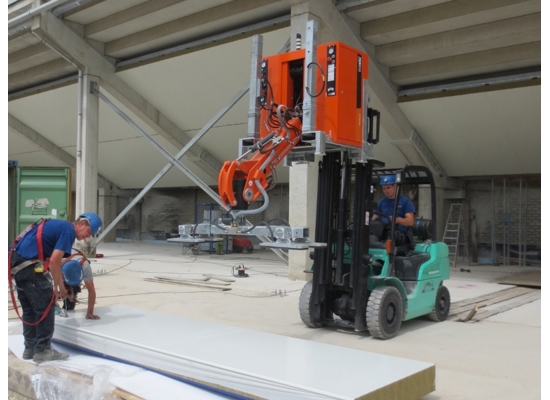 In combinatie met een heftruck of verreiker kan de CladMaster sandwich plafondpanelen plaatsen, door oplaadbare accu’s geheel zelfstandig werkende, apparaat panelen tot een gewicht van 600 kg met zuignappen oppakken en manipuleren. De veiligheid is hierbij gegarandeerd door de toepassing van twee onafhankelijk werkende vacuümcircuits, alsmede een geluidsalarm die de bediener waarschuwt bij een te laag vacuümniveau.