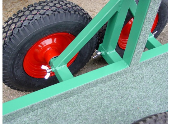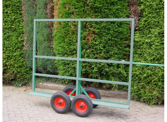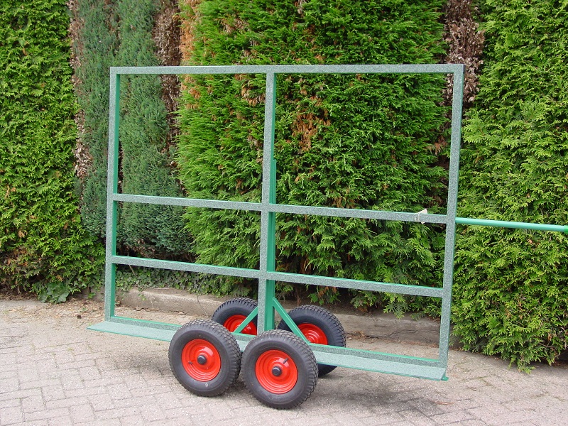Deze eenmanswagen heeft een frame van 2000x1500mm en een opzet van 180mm breed aan een zijde. De wagen is voorzien van 4 losse wielen die ingestoken zijn met as stompen.