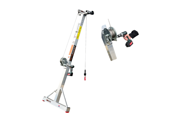 Gevelridder M Hybride – De compacte en veelzijdige minikraan voor gevelwerk De Gevelridder M Hybride is de ideale hijsoplossing voor werkzaamheden aan gevels, binnenruimtes en over balustrades. Dankzij zijn compacte en lichte ontwerp is deze minikraan eenvoudig door één persoon te tillen en past hij moeiteloos in een bedrijfsbus. Dit maakt hem perfect voor monteurs en installateurs die flexibiliteit en efficiëntie nodig hebben op locatie. Krachtig en veelzijdig hijsen Maximaal hefvermogen: 250 kg op de begane grond 200 kg op de eerste verdieping Toepasbaar voor diverse hijsklussen: geschikt voor glaszetten, montagewerk en andere bouwtoepassingen. Modulaire uitbreidingsopties: optioneel uit te rusten met een giekconstructie voor hijswerkzaamheden over steigers. Compact, draagbaar en efficiënt Lichtgewicht: eenvoudig te verplaatsen en te hanteren door één persoon. Mobiel inzetbaar: door zijn compacte formaat gemakkelijk te vervoeren in een werkbus. Snel en eenvoudig op te bouwen: direct klaar voor gebruik op de werkplek. De Gevelridder M Hybride biedt de perfecte balans tussen kracht, mobiliteit en gebruiksgemak, waardoor hij een onmisbaar hulpmiddel is voor professionals in de bouw en montage.