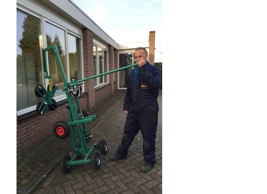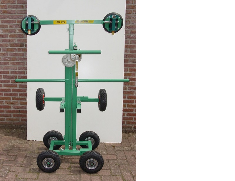 De Ruitensjouwer kan gebruikt worden door 1 persoon voor glasplaten met een gewicht van maximaal 150kg. Deze is beschikbaar met een extra module om deuren te transporteren. Hierbij kunnen de nappen en de luchtbanden smaller worden gezet aan de onderzijde.