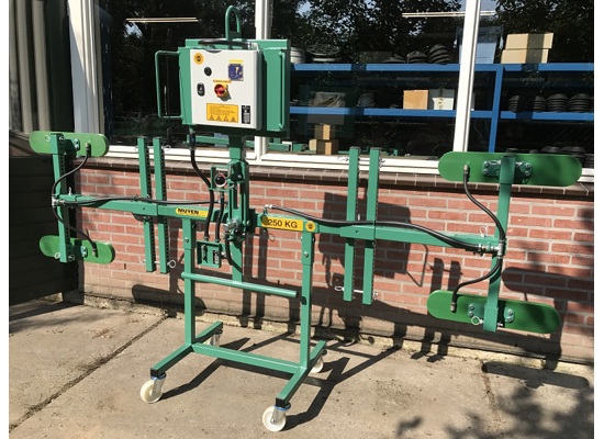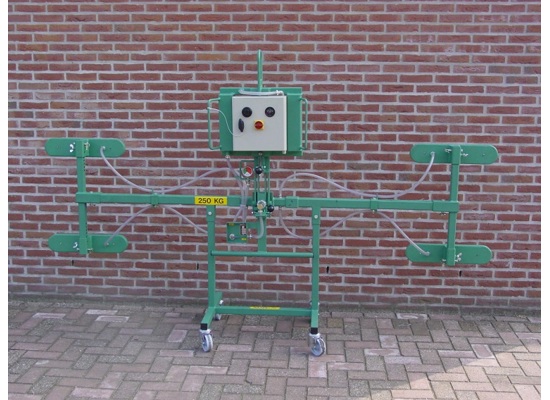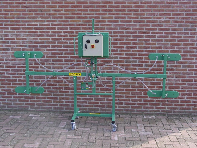 Het vacuümhefapparaat voor sandwich- en dakpanelen tot 10m, 250kg. De nappen zijn verstelbaar, zodat meerdere type platen kunt gehesen kunnen worden. Het apparaat is ook als wissel set beschikbaar, zodat u 1 basis unit gebruikt met een ovale zuignap voor de wanden en dit model voor de dak panelen. Sinds 2017 plaatsen wij kunststof zuignappen op de dak panelen zuiger maar het model VA114G compleet met accu unit, volgens de eerste foto. Op de foto’s ziet u ook zuignappen geschikt voor golfplaten en dakpanpanelen. Let op: de nappen zijn 520×120 mm ovaal, alle sandwichpanelen van diverse leveranciers hebben verschillende modellen. In de eerste plaats moet de zuignap natuurlijk passen op het profiel, daarnaast kunnen vervormingen of reliëf in het paneel ervoor zorgen dat u geen aanzuiging krijgt. Wij kunnen dus nooit garanderen dat deze zuiger op alle modellen zal aanzuigen.