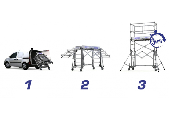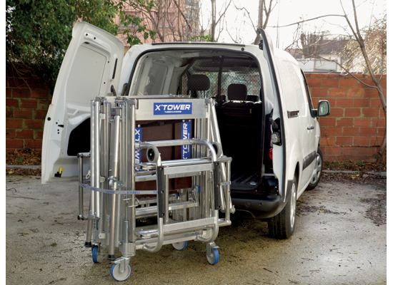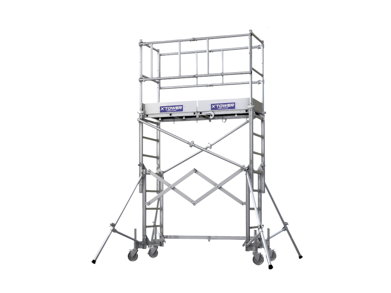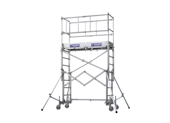 De X'Tower is een unieke telescopische steiger die zeer eenvoudig door 1 persoon binnen 3 minuten opgebouwd kan worden. Na gebruik is de steiger zeer compact op te vouwen tot een klein pakket en makkelijk te verplaatsen op de eigen wielen. Past met gemak in een bestelauto.